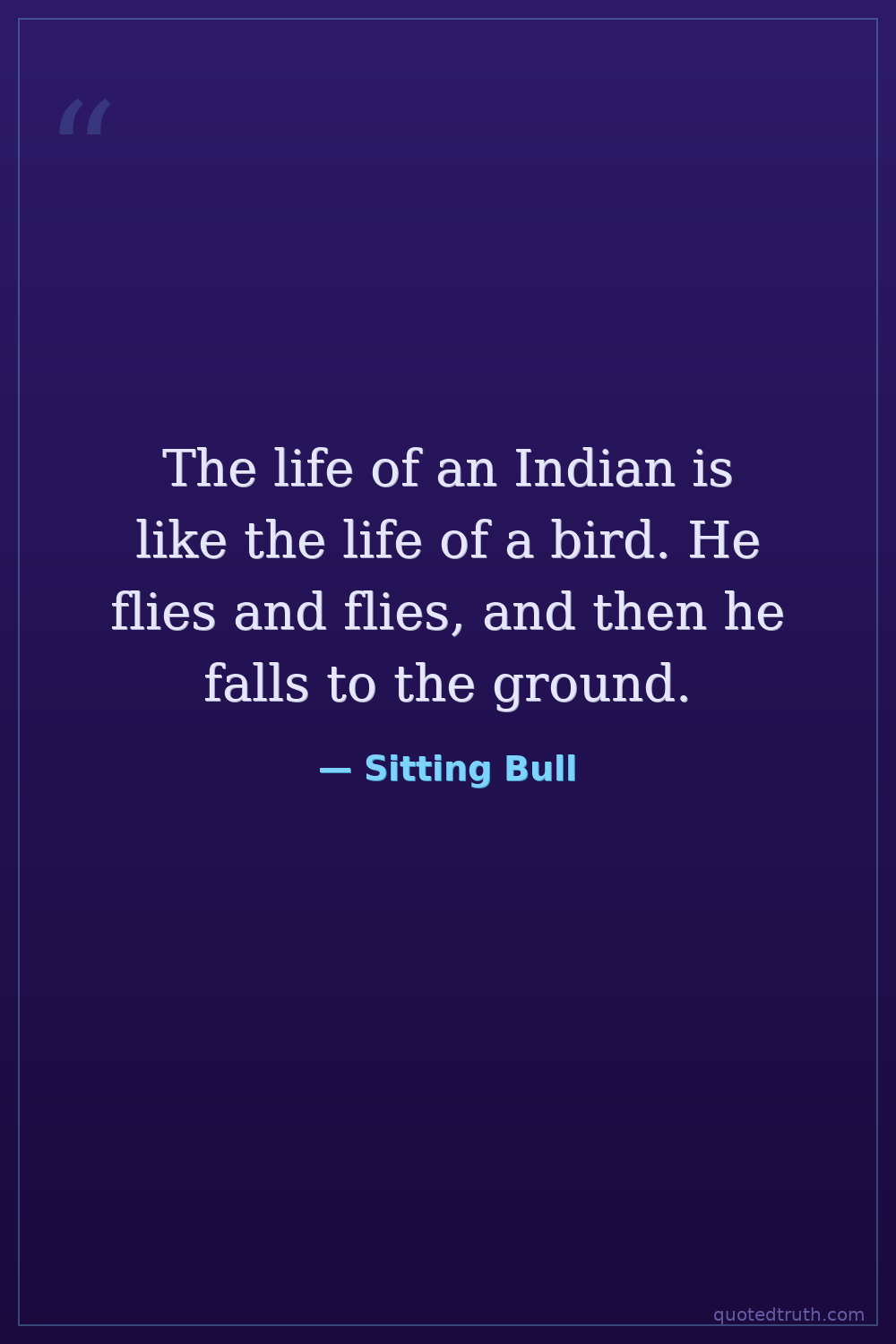 The life of an Indian is like the life of a bird. He flies and flies, and then he falls to the ground.