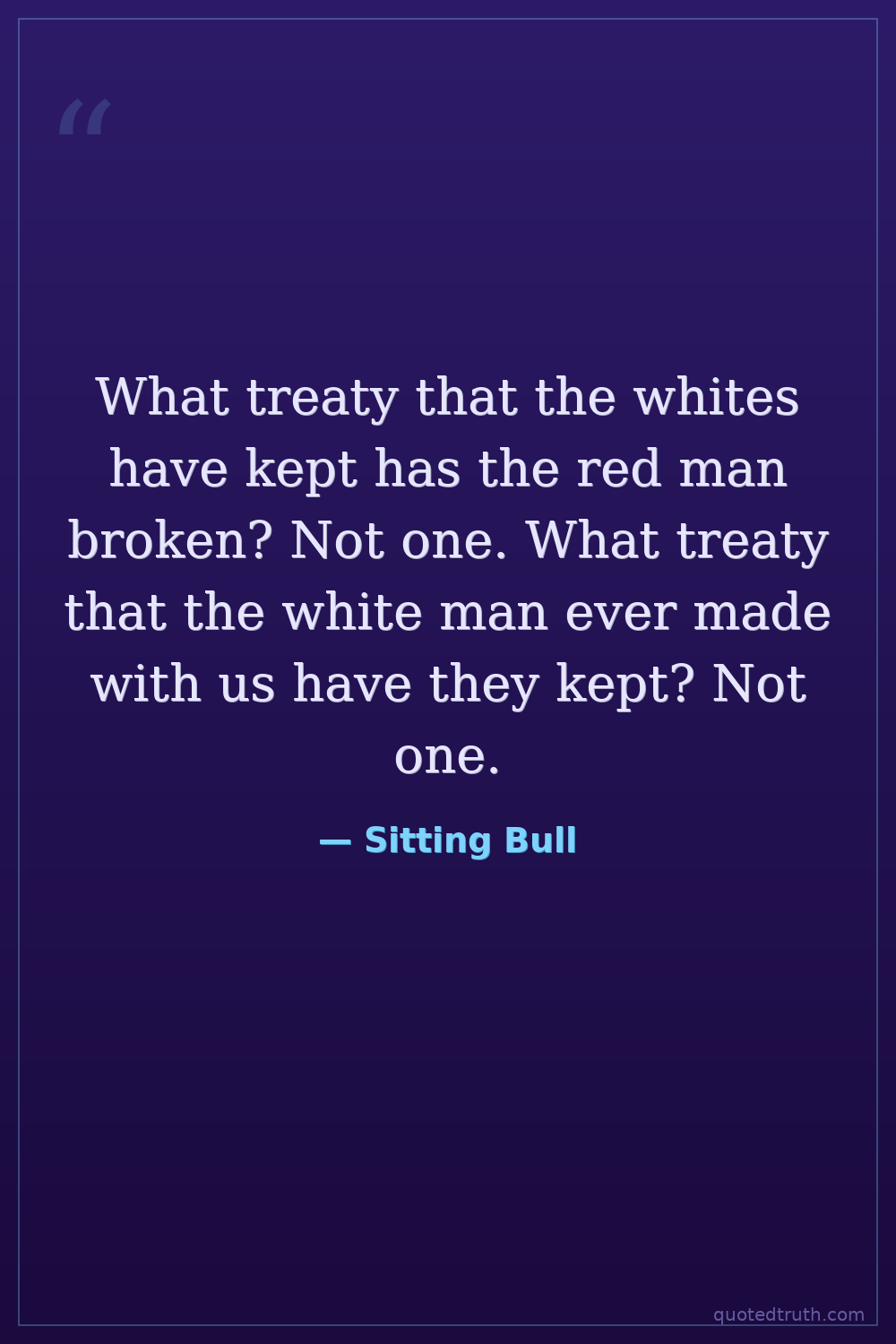 What treaty that the whites have kept has the red man broken? Not one. What treaty that the white man ever made with us have they kept? Not one.
