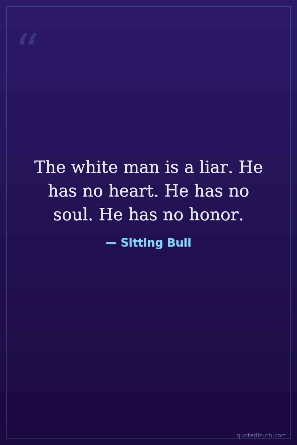 The white man is a liar. He has no heart. He has no soul. He has no honor.