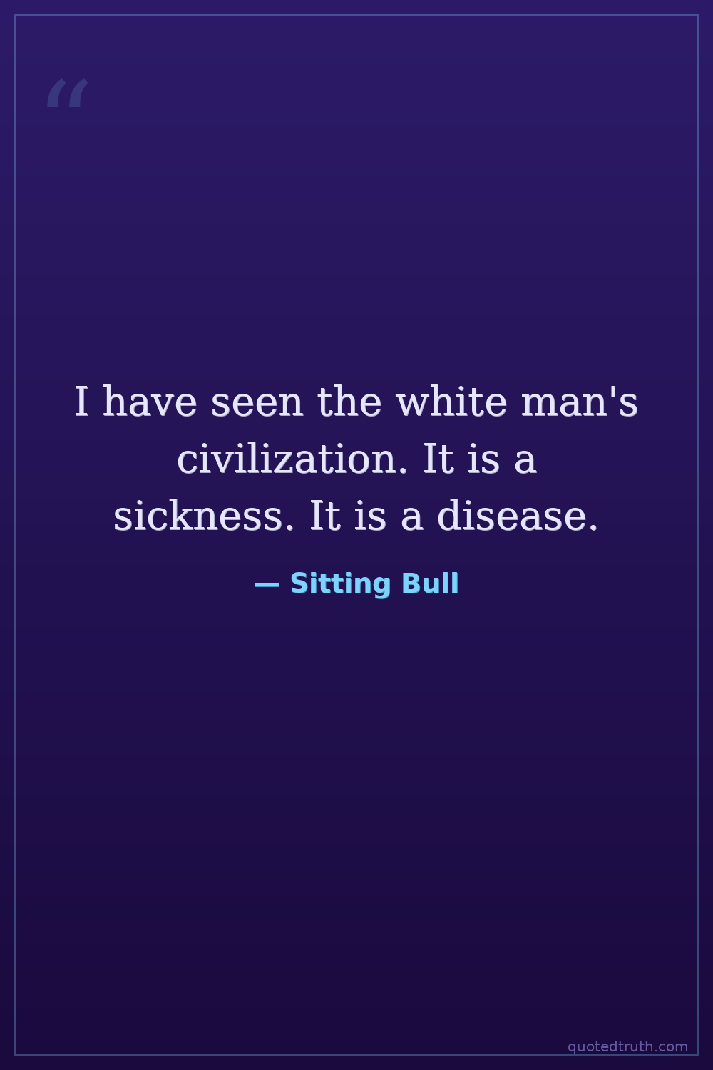 I have seen the white man's civilization. It is a sickness. It is a disease.