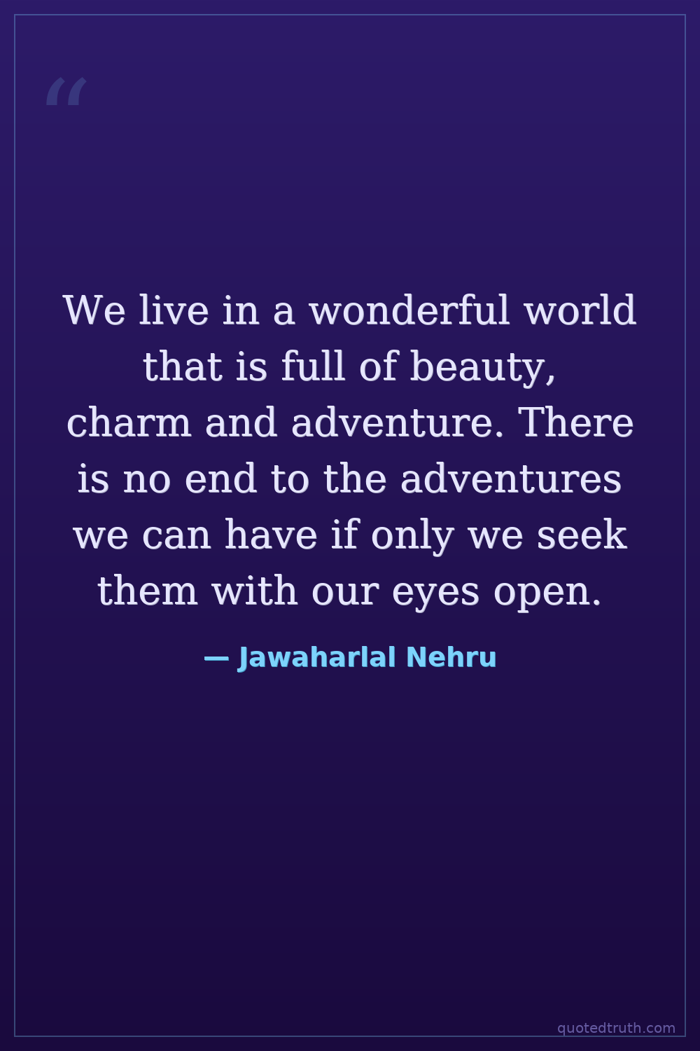 We live in a wonderful world that is full of beauty, charm and adventure. There is no end to the adventures we can have if only we seek them with our eyes open.