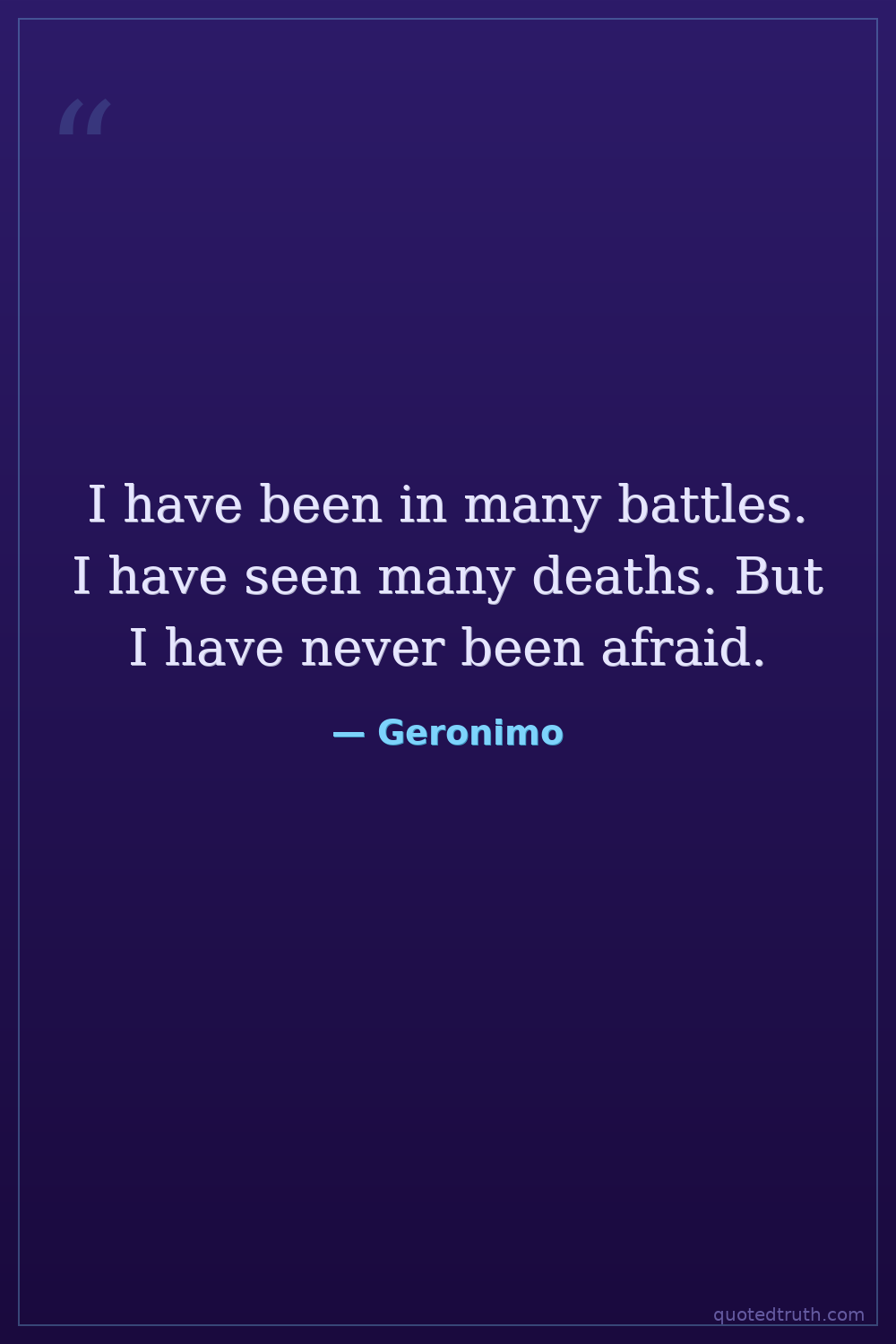 I have been in many battles. I have seen many deaths. But I have never been afraid.