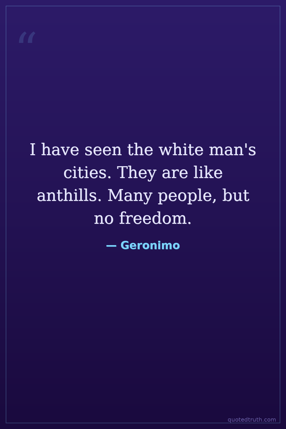 I have seen the white man's cities. They are like anthills. Many people, but no freedom.
