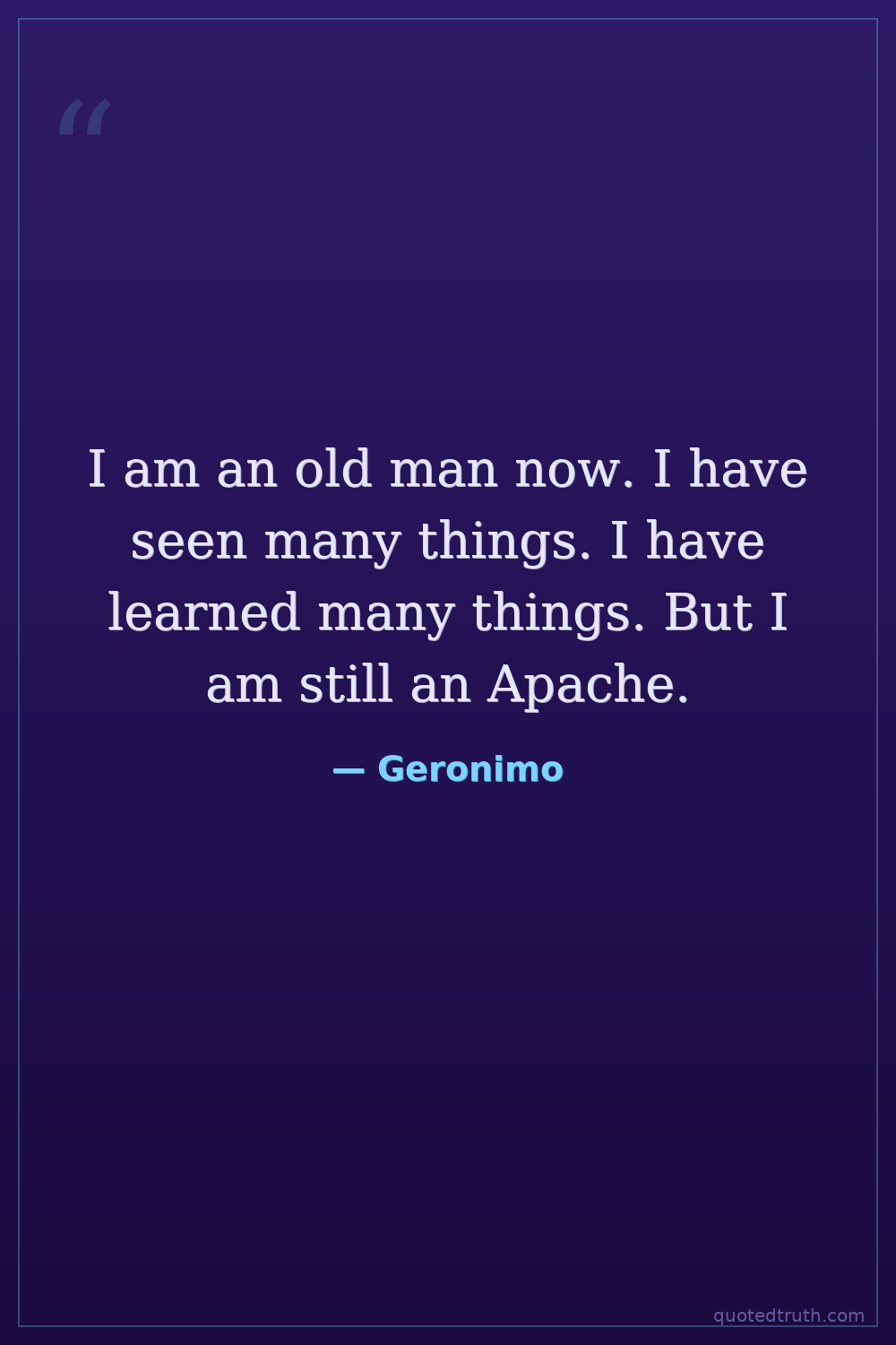 I am an old man now. I have seen many things. I have learned many things. But I am still an Apache.