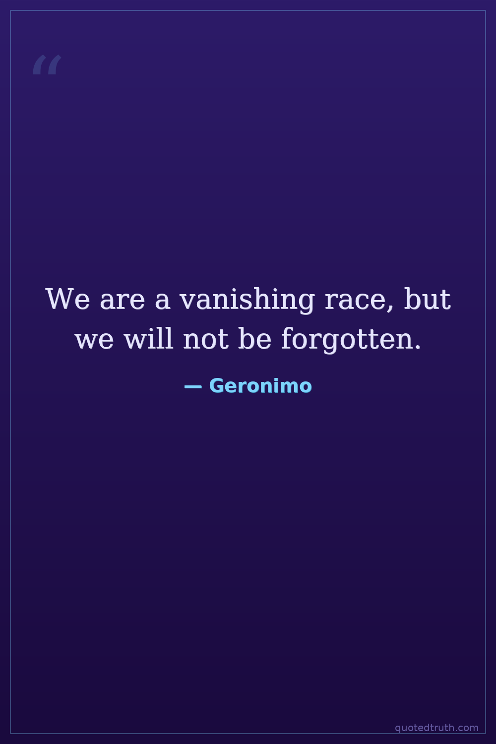 We are a vanishing race, but we will not be forgotten.