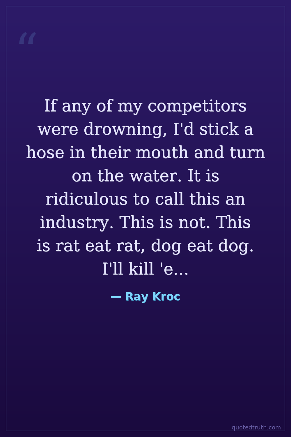 If any of my competitors were drowning, I'd stick a hose in their mouth and turn on the water. It is ridiculous to call this an industry. This is not. This is rat eat rat, dog eat dog. I'll kill 'em, and I'm going to kill 'em before they kill me.