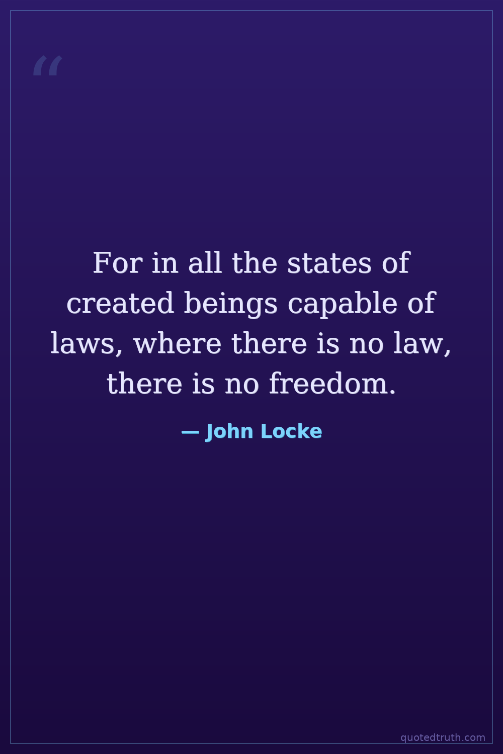 For in all the states of created beings capable of laws, where there is no law, there is no freedom.
