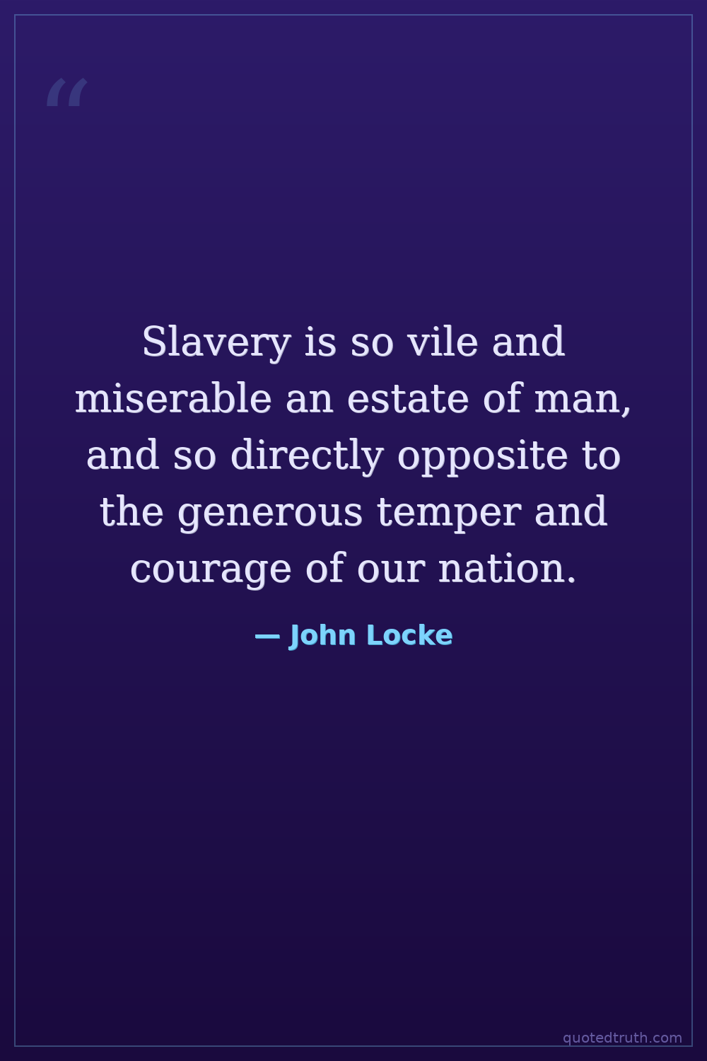 Slavery is so vile and miserable an estate of man, and so directly opposite to the generous temper and courage of our nation.