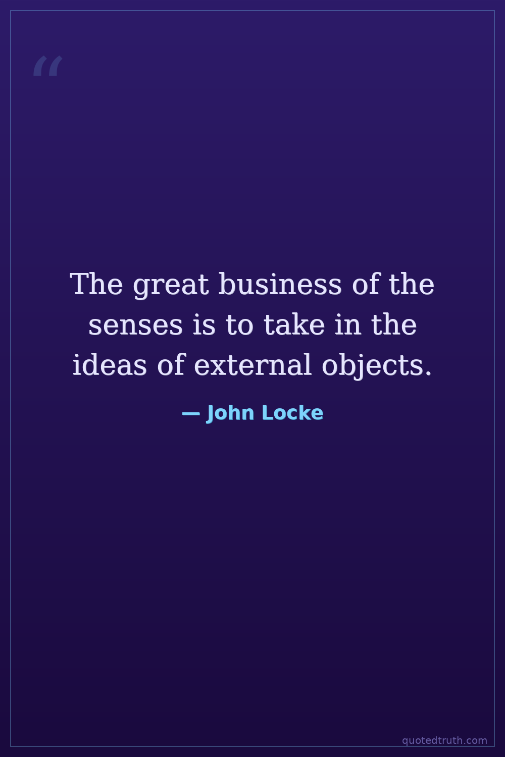 The great business of the senses is to take in the ideas of external objects.