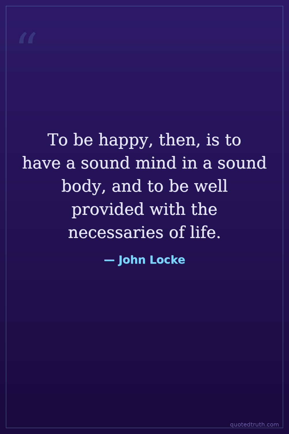 To be happy, then, is to have a sound mind in a sound body, and to be well provided with the necessaries of life.