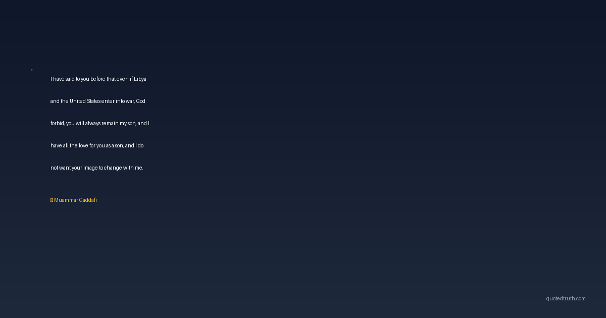 I have said to you before that even if Libya and the United States enter into war, God forbid, you will always remain my son, and I have all the love for you as a son, and I do not want your image to change with me.