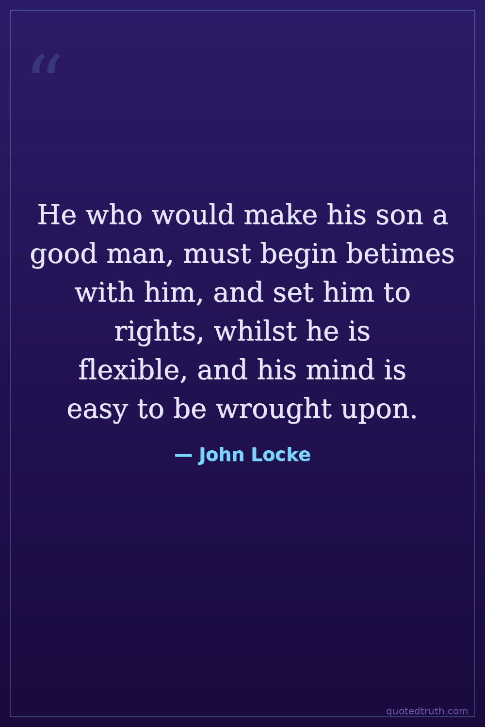 He who would make his son a good man, must begin betimes with him, and set him to rights, whilst he is flexible, and his mind is easy to be wrought upon.