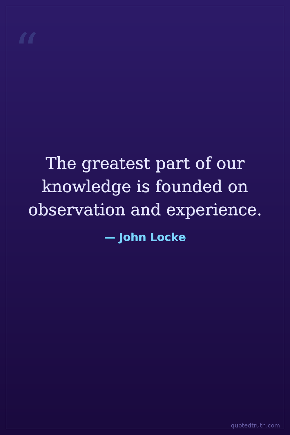 The greatest part of our knowledge is founded on observation and experience.