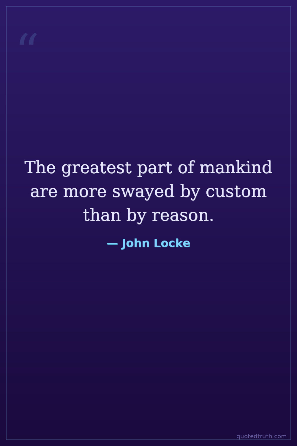 The greatest part of mankind are more swayed by custom than by reason.