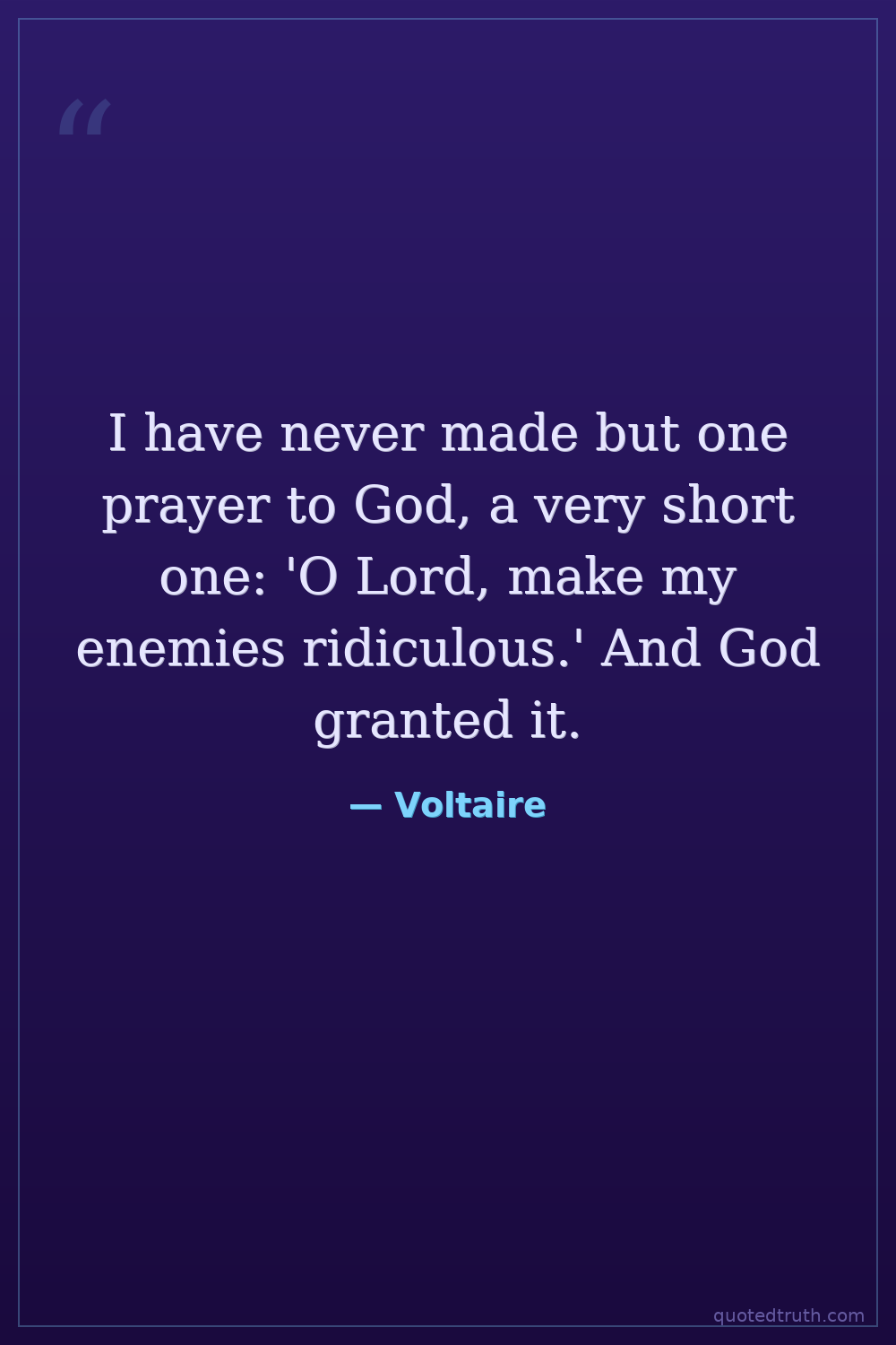 I have never made but one prayer to God, a very short one: 'O Lord, make my enemies ridiculous.' And God granted it.
