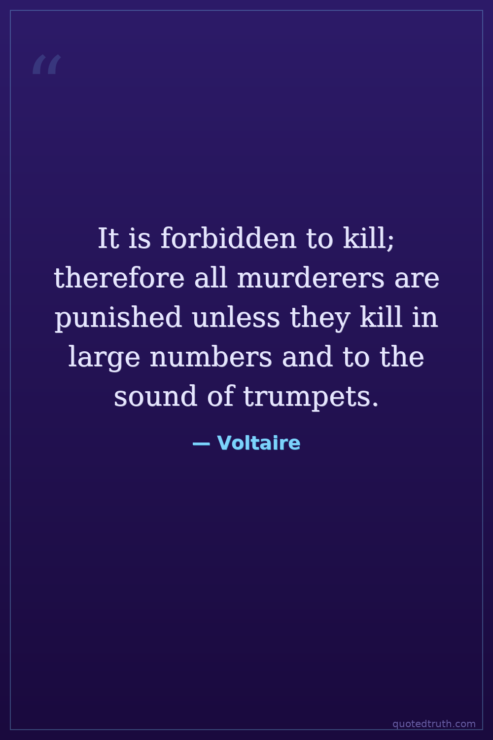 It is forbidden to kill; therefore all murderers are punished unless they kill in large numbers and to the sound of trumpets.