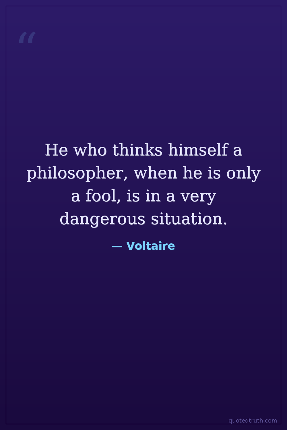 He who thinks himself a philosopher, when he is only a fool, is in a very dangerous situation.