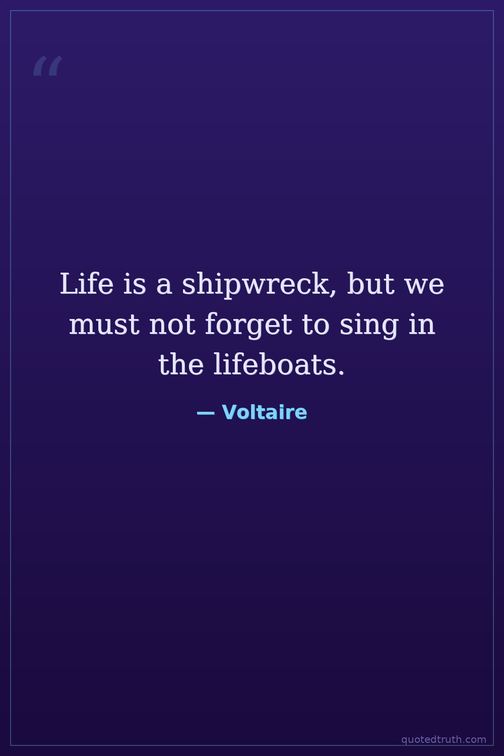 Life is a shipwreck, but we must not forget to sing in the lifeboats.