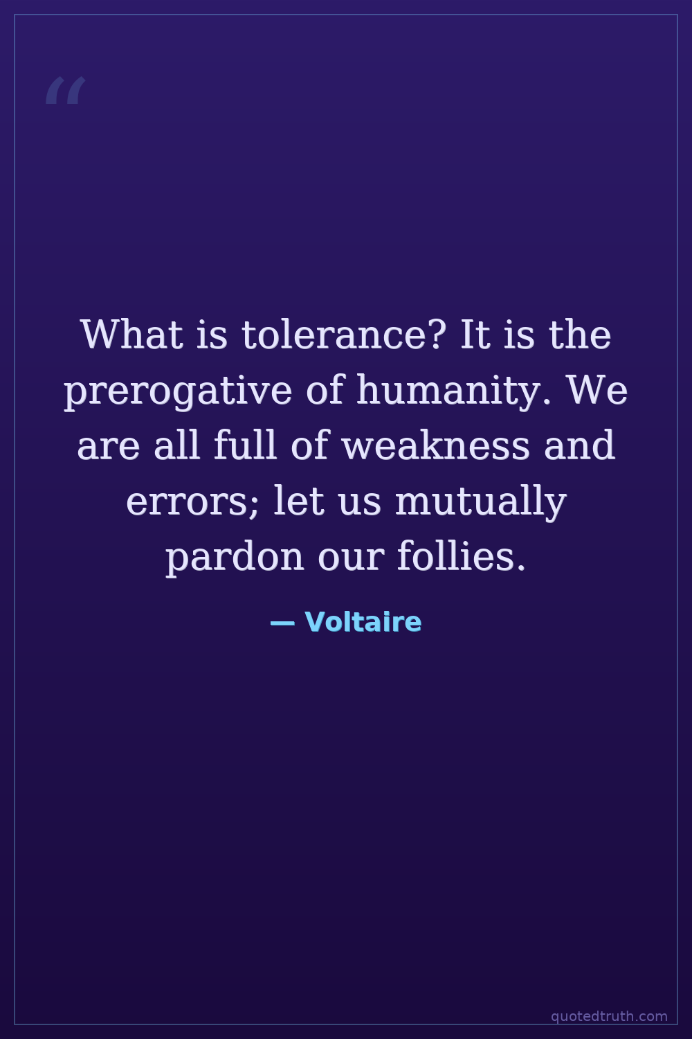 What is tolerance? It is the prerogative of humanity. We are all full of weakness and errors; let us mutually pardon our follies.