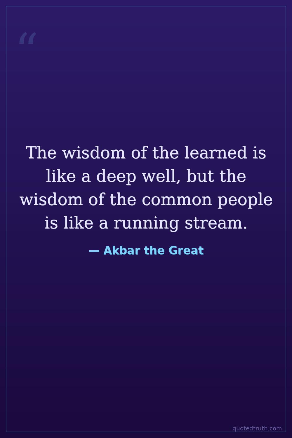 The wisdom of the learned is like a deep well, but the wisdom of the common people is like a running stream.