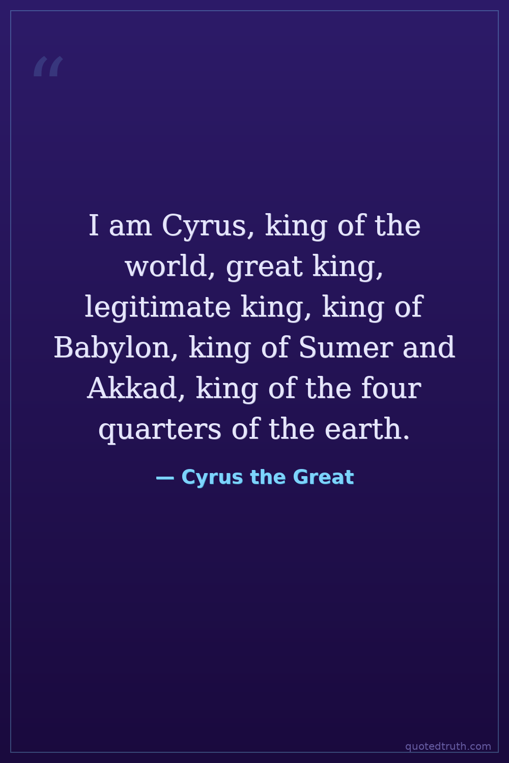 I am Cyrus, king of the world, great king, legitimate king, king of Babylon, king of Sumer and Akkad, king of the four quarters of the earth.