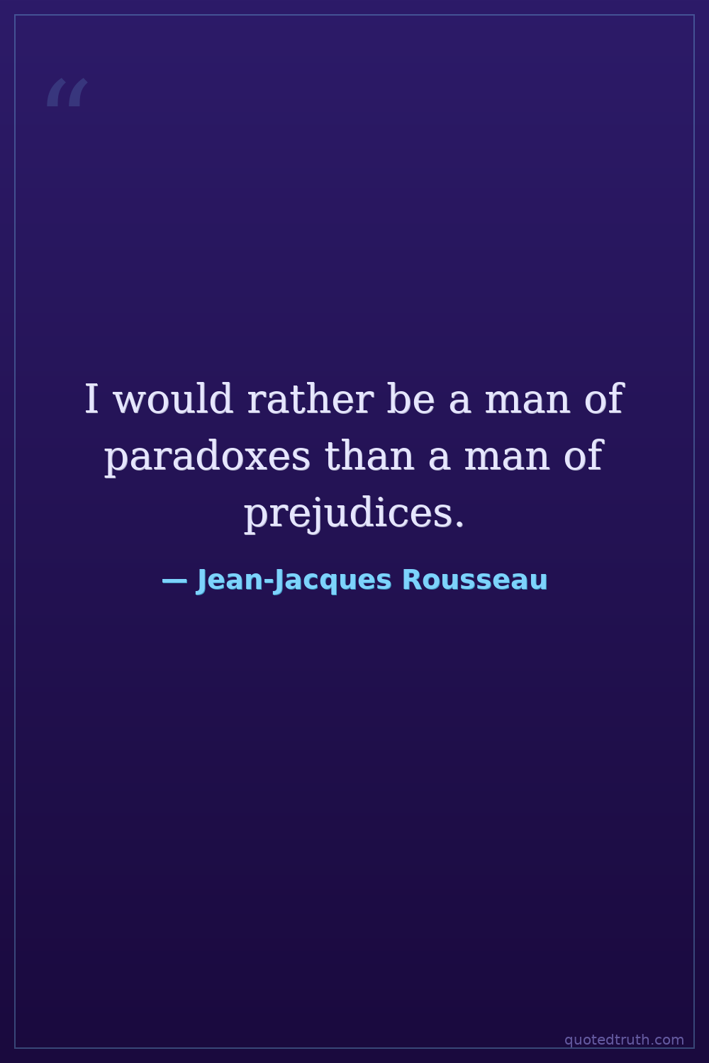I would rather be a man of paradoxes than a man of prejudices.