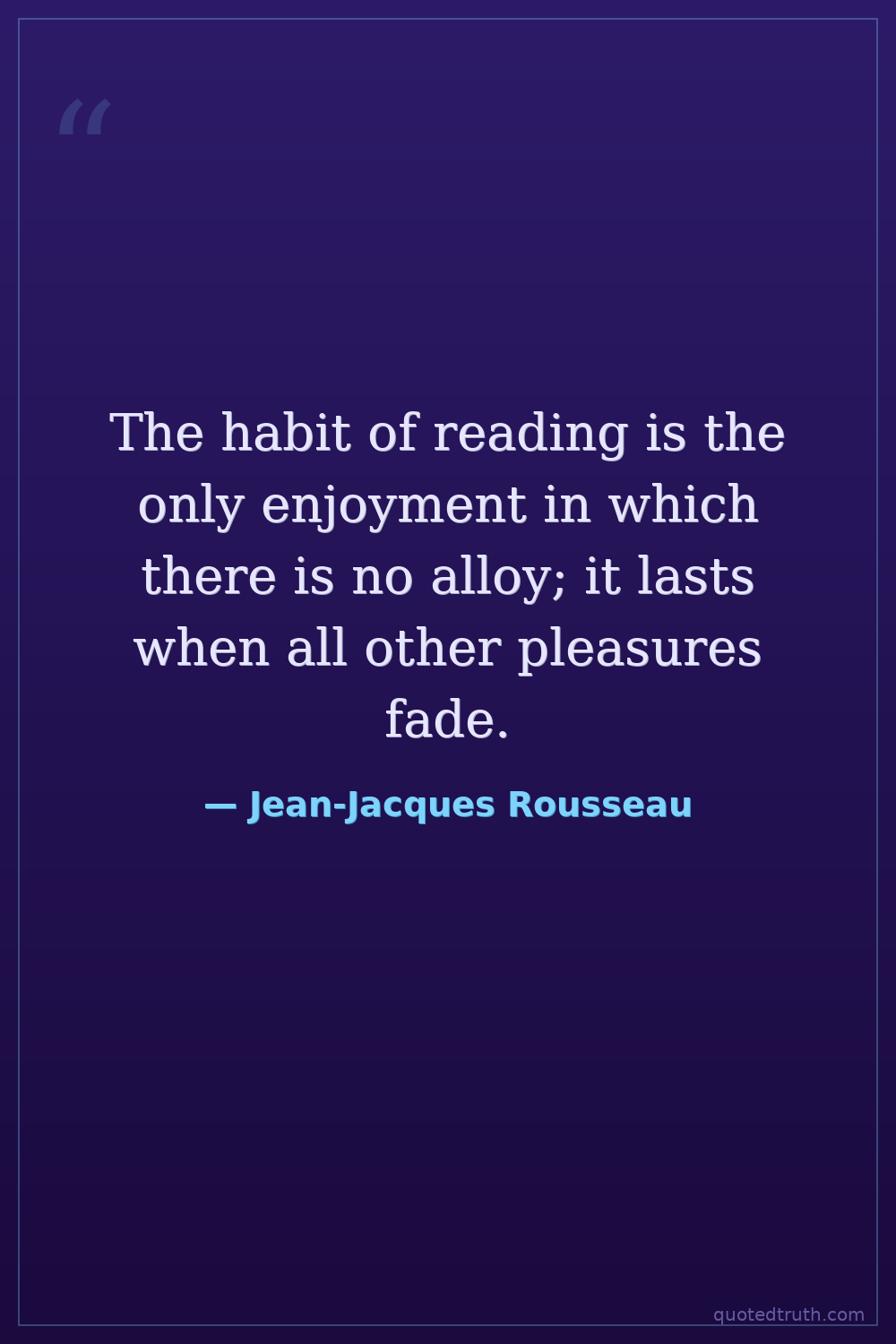 The habit of reading is the only enjoyment in which there is no alloy; it lasts when all other pleasures fade.