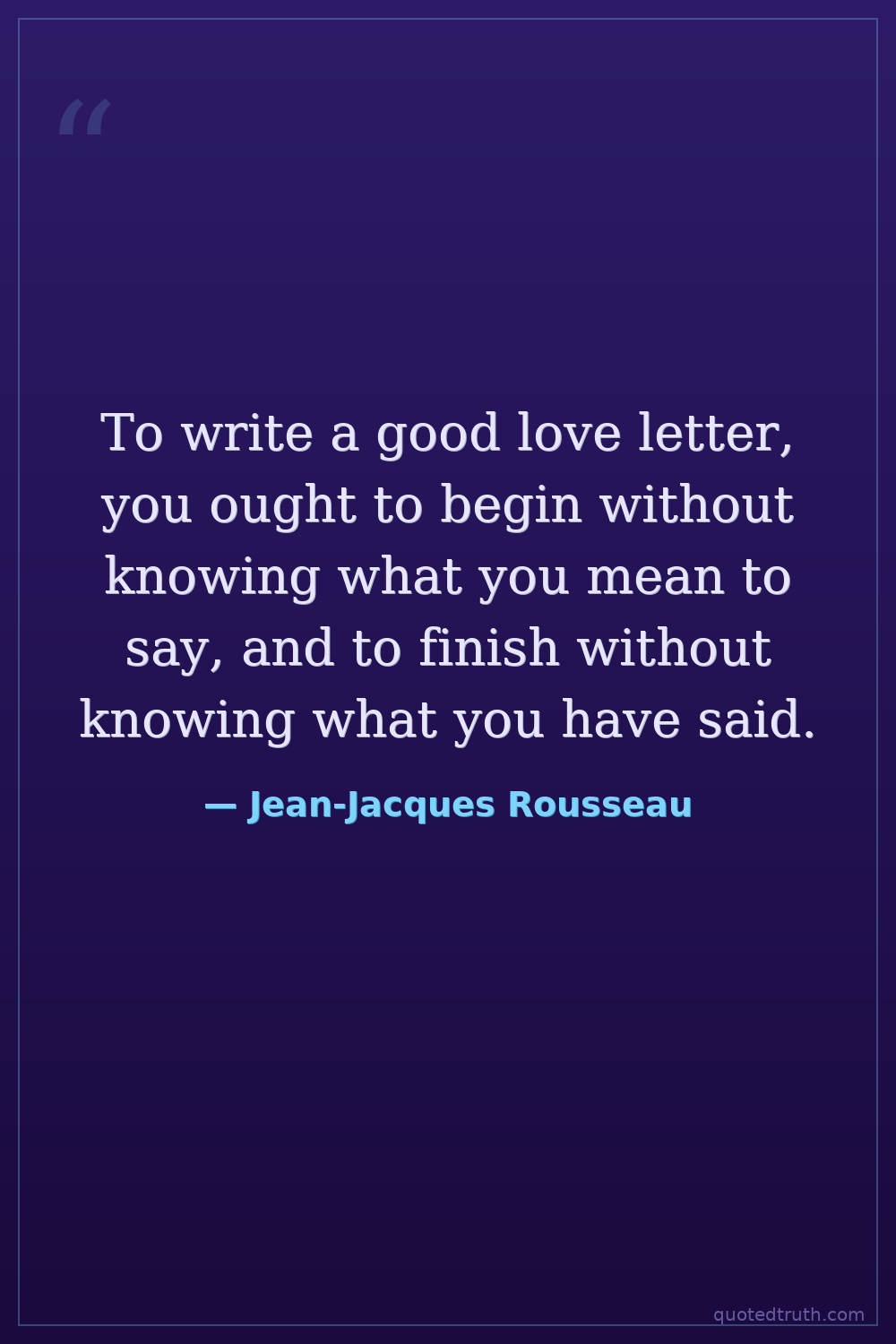 To write a good love letter, you ought to begin without knowing what you mean to say, and to finish without knowing what you have said.