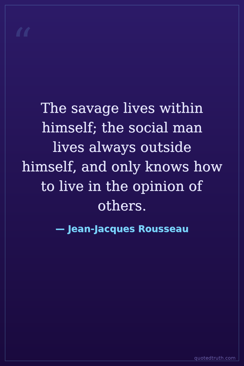 The savage lives within himself; the social man lives always outside himself, and only knows how to live in the opinion of others.