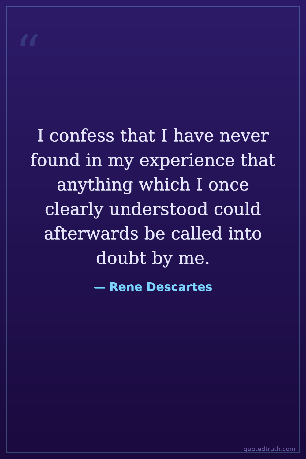 I confess that I have never found in my experience that anything which I once clearly understood could afterwards be called into doubt by me.