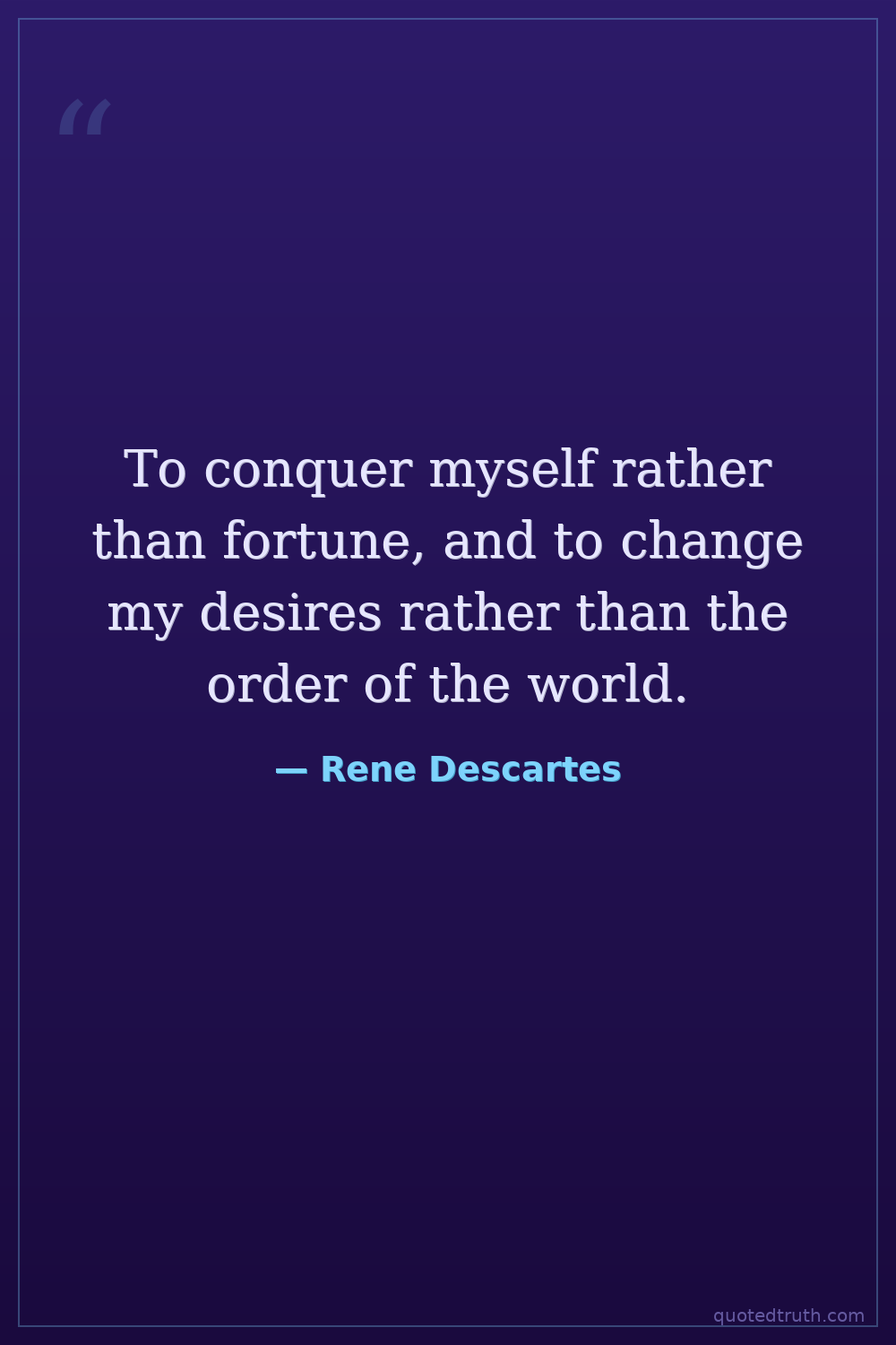 To conquer myself rather than fortune, and to change my desires rather than the order of the world.