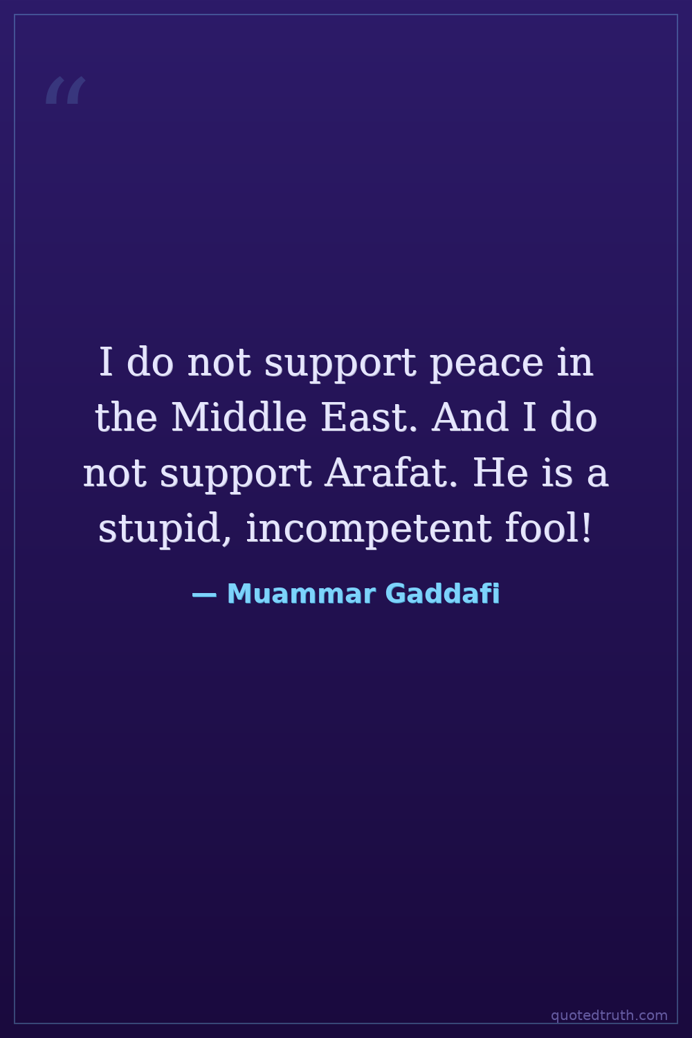 I do not support peace in the Middle East. And I do not support Arafat. He is a stupid, incompetent fool!