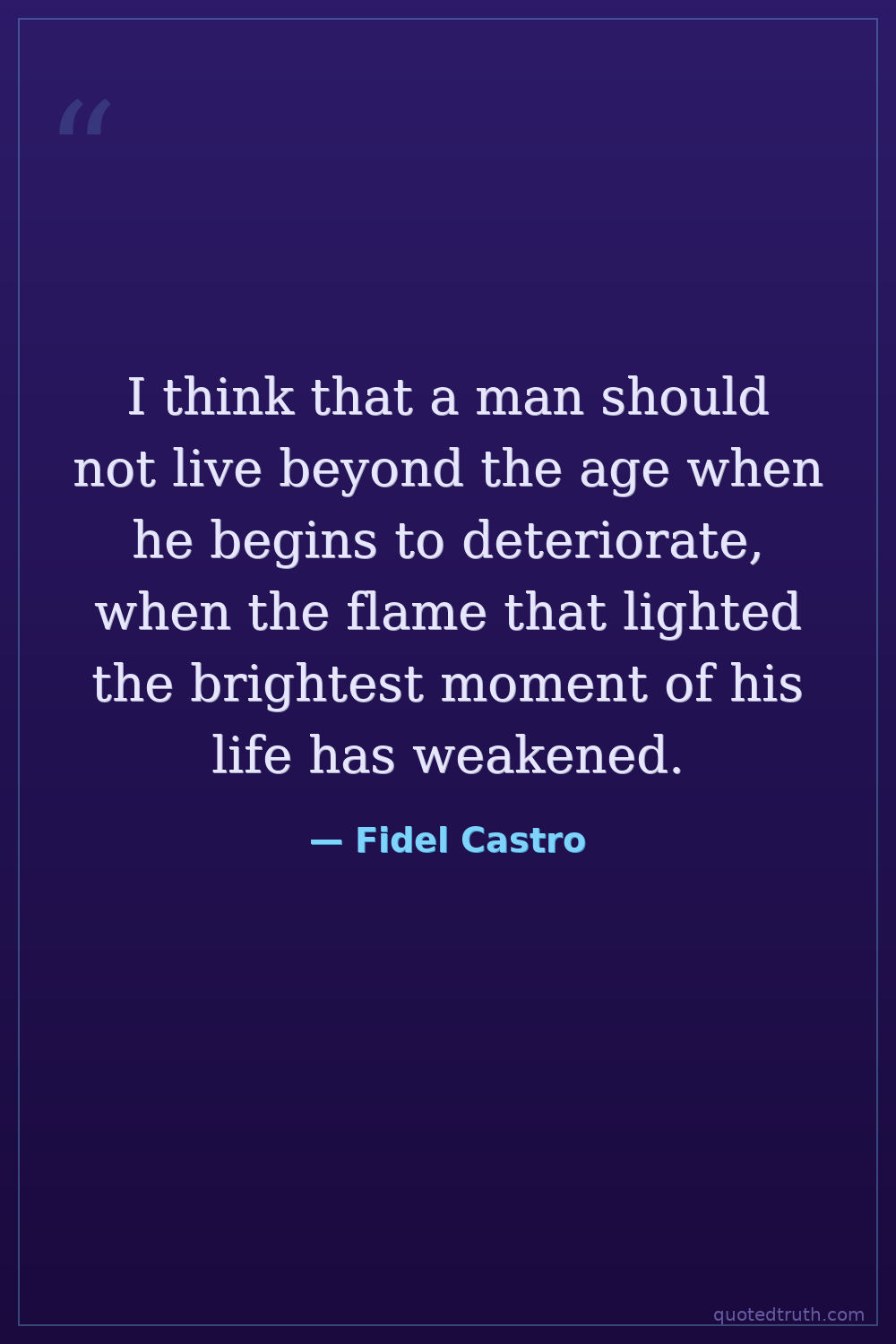 I think that a man should not live beyond the age when he begins to deteriorate, when the flame that lighted the brightest moment of his life has weakened.