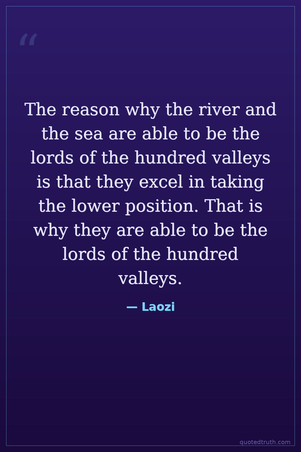 The reason why the river and the sea are able to be the lords of the hundred valleys is that they excel in taking the lower position. That is why they are able to be the lords of the hundred valleys.