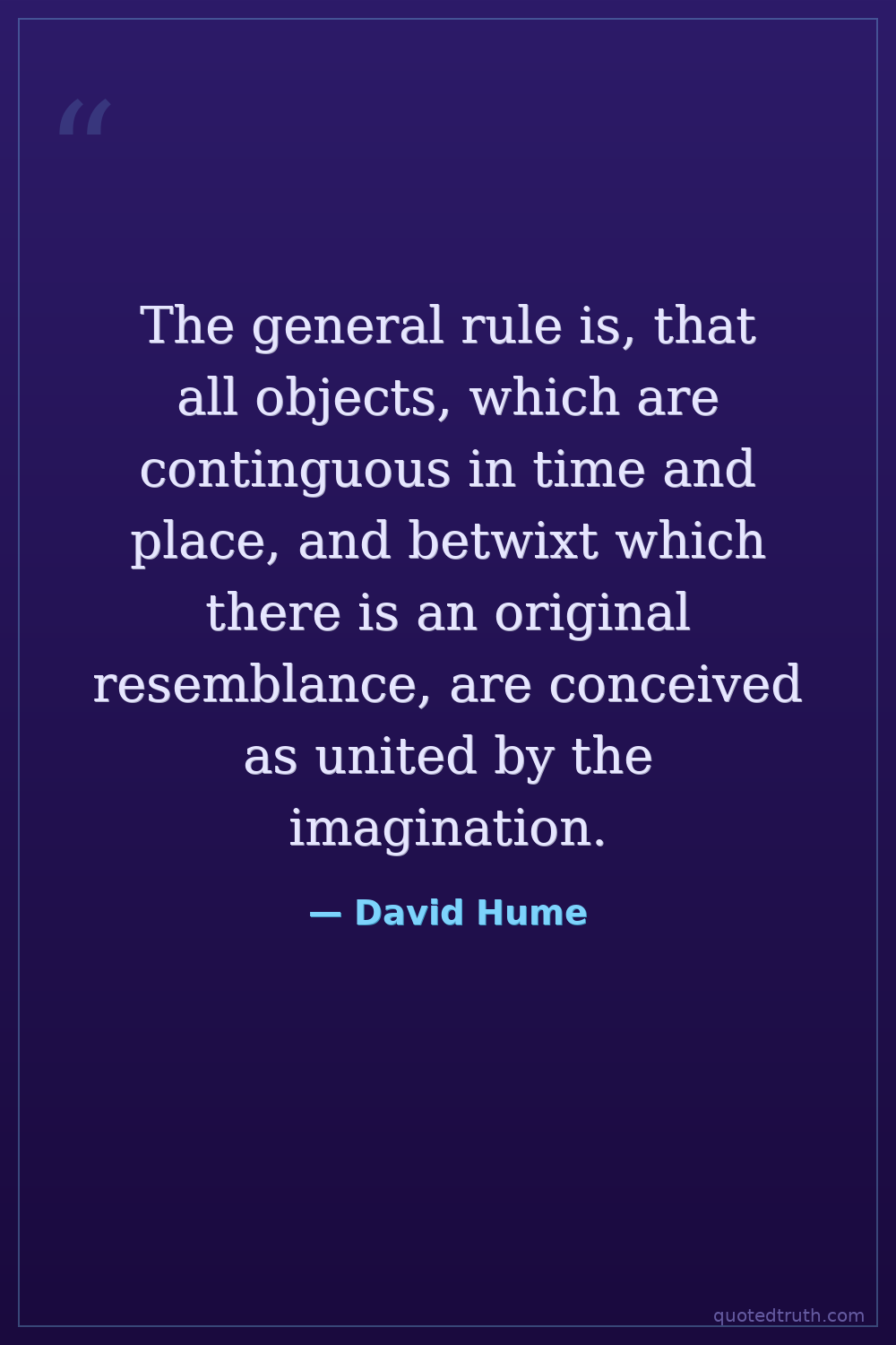 The general rule is, that all objects, which are continguous in time and place, and betwixt which there is an original resemblance, are conceived as united by the imagination.