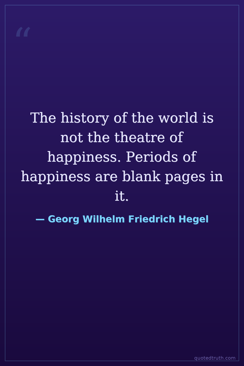The history of the world is not the theatre of happiness. Periods of happiness are blank pages in it.