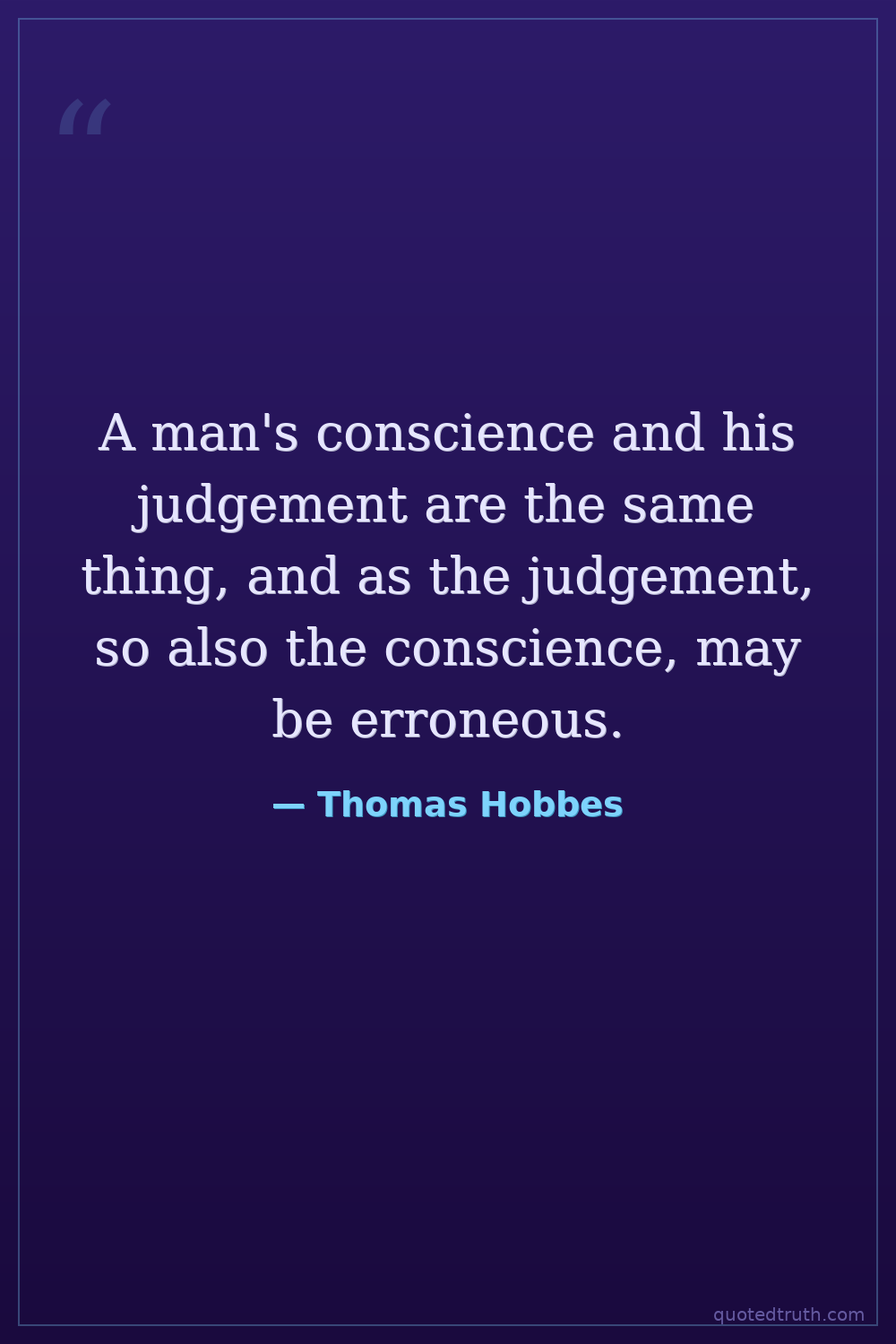 A man's conscience and his judgement are the same thing, and as the judgement, so also the conscience, may be erroneous.