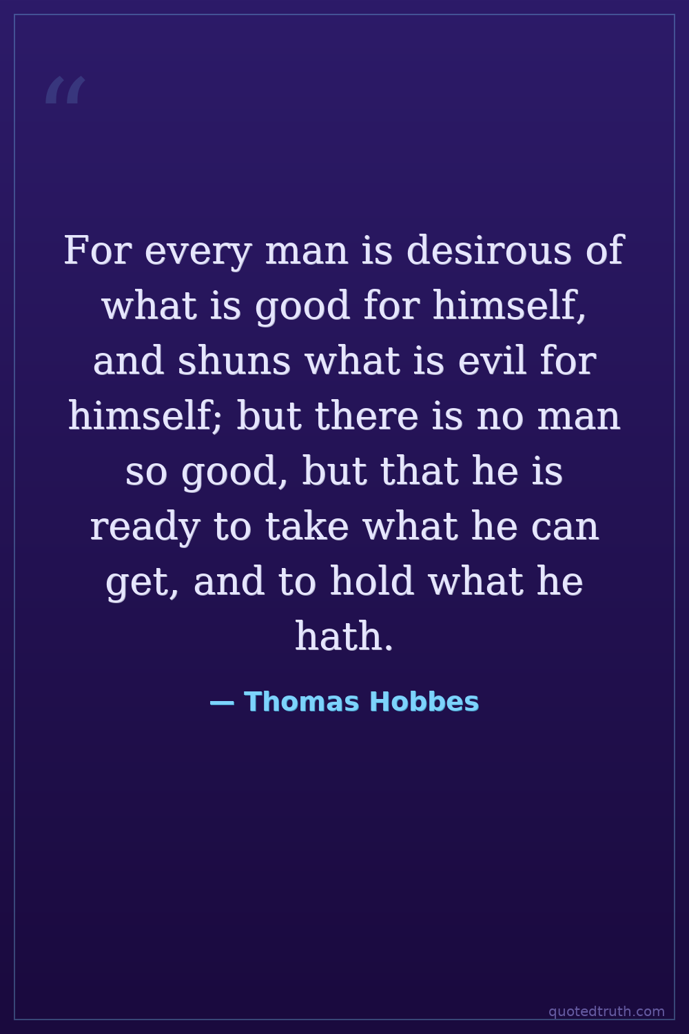 For every man is desirous of what is good for himself, and shuns what is evil for himself; but there is no man so good, but that he is ready to take what he can get, and to hold what he hath.
