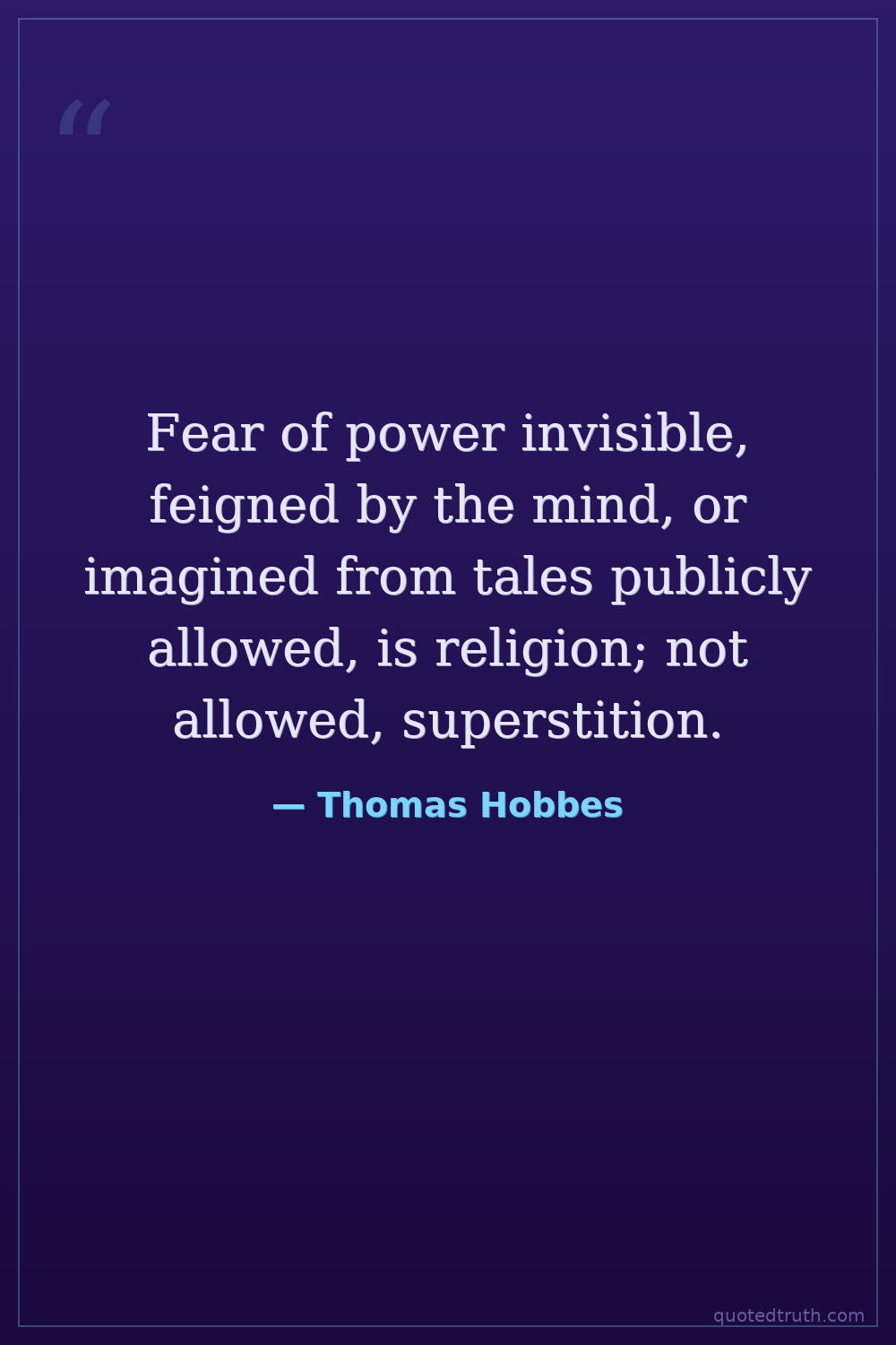Fear of power invisible, feigned by the mind, or imagined from tales publicly allowed, is religion; not allowed, superstition.