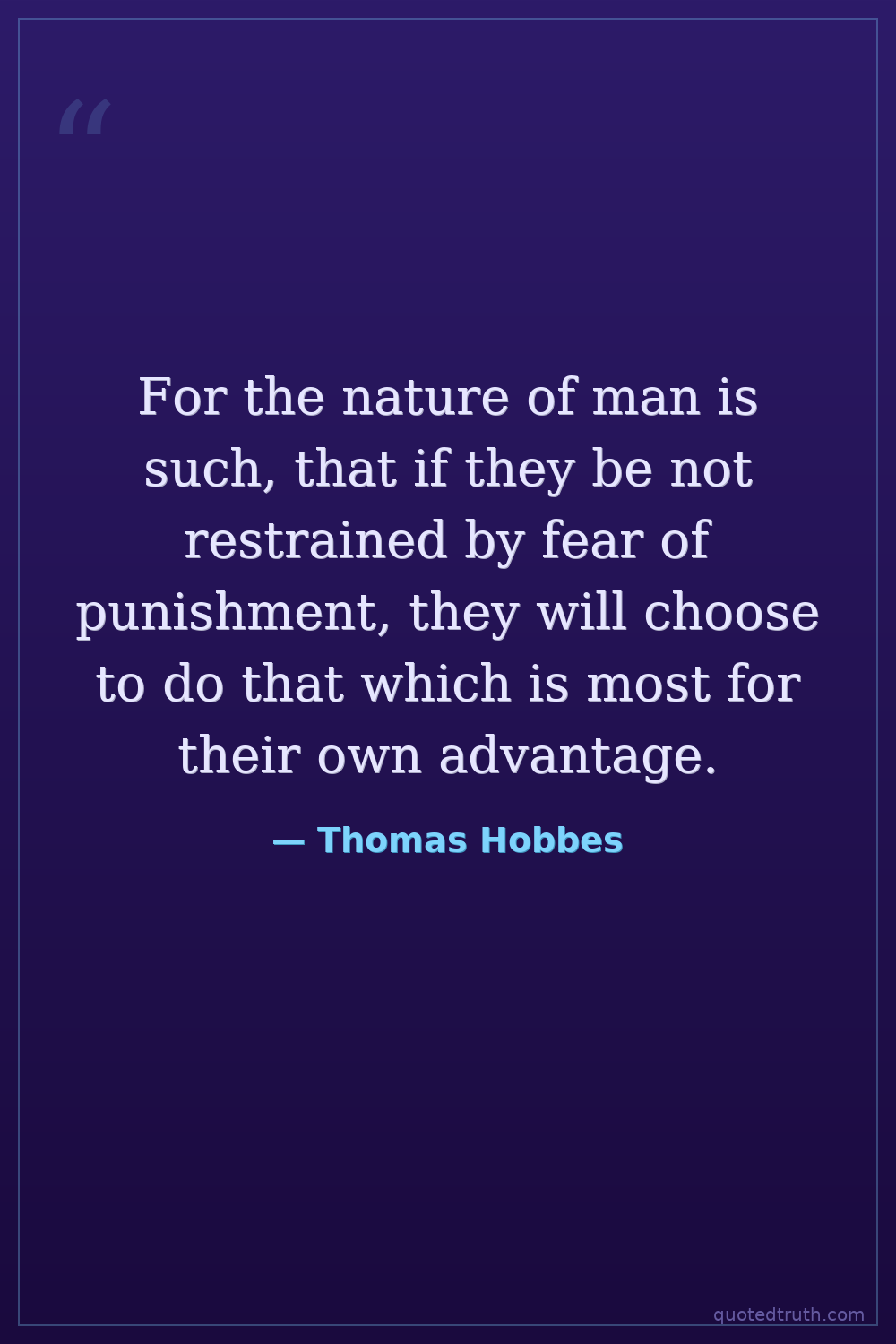 For the nature of man is such, that if they be not restrained by fear of punishment, they will choose to do that which is most for their own advantage.
