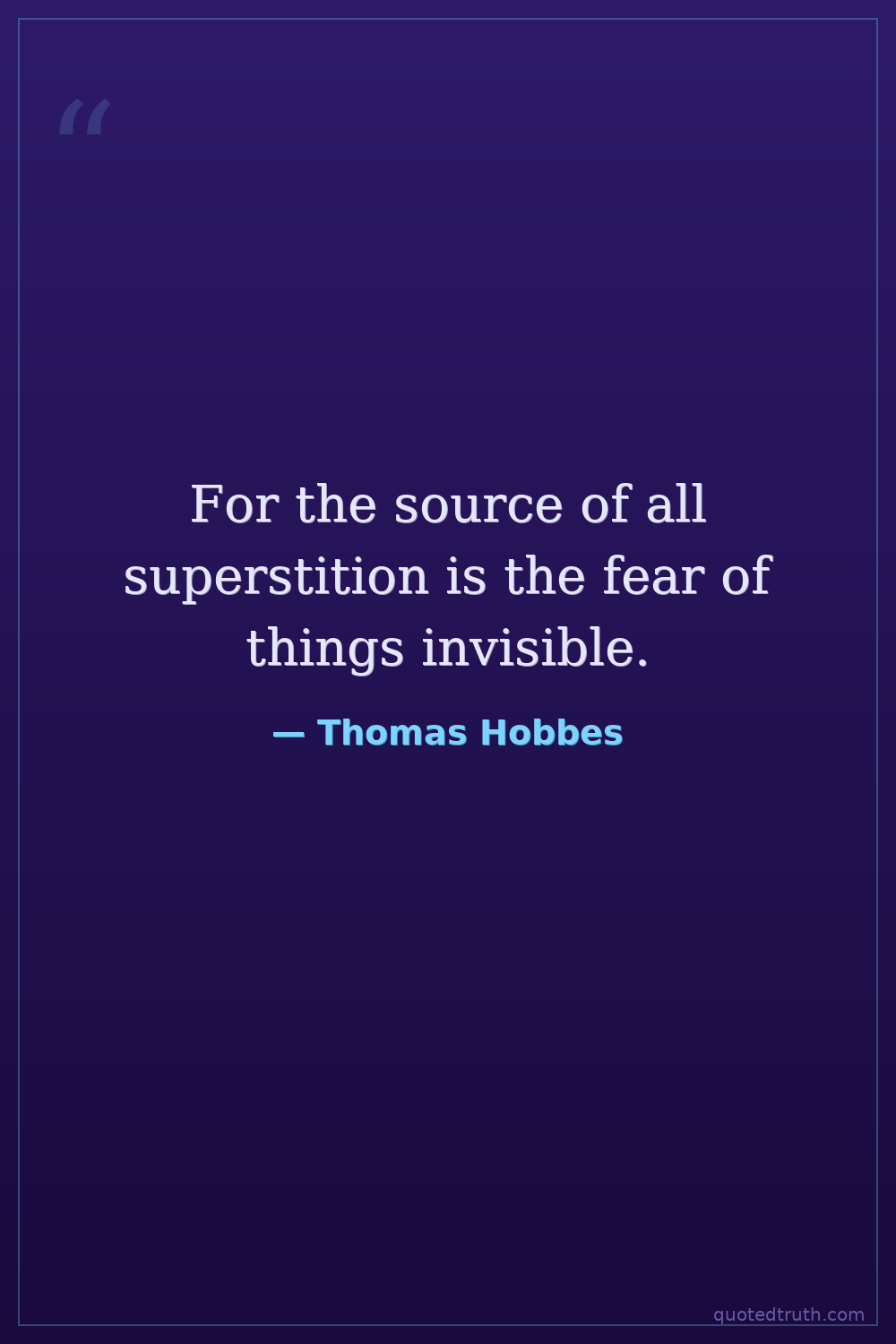 For the source of all superstition is the fear of things invisible.