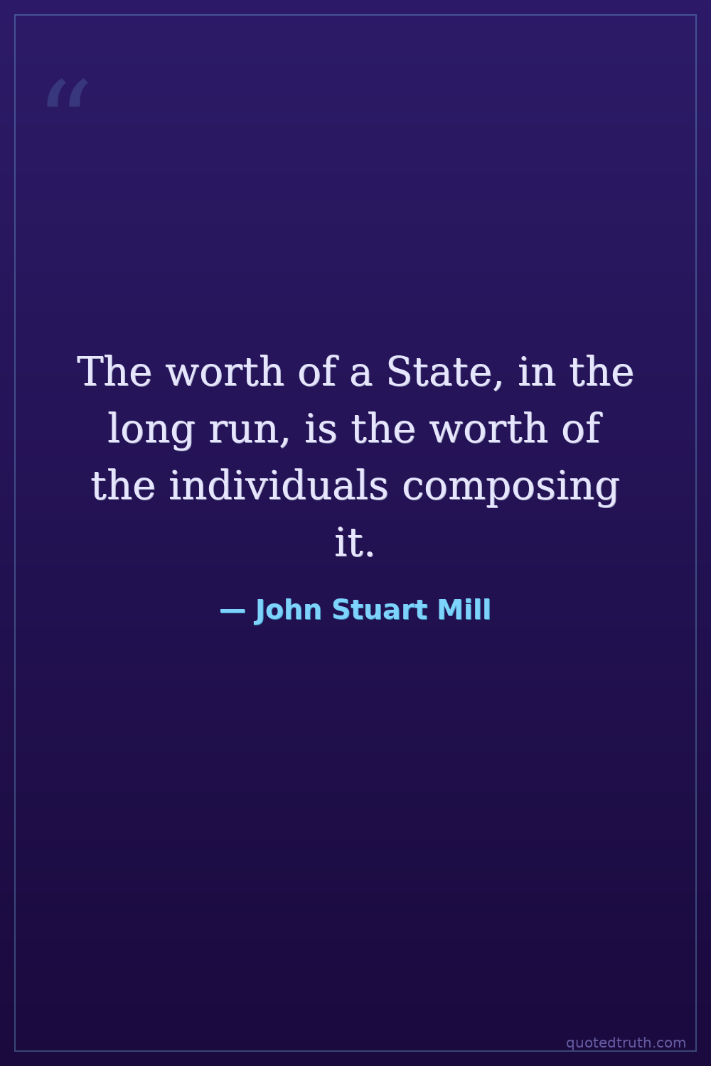 The worth of a State, in the long run, is the worth of the individuals composing it.