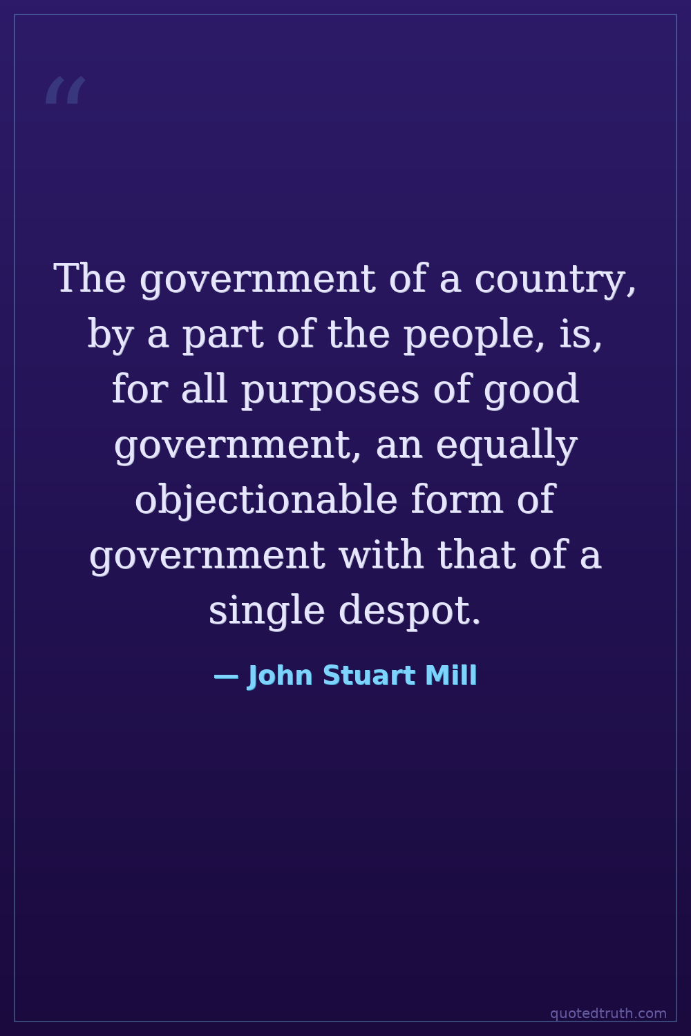 The government of a country, by a part of the people, is, for all purposes of good government, an equally objectionable form of government with that of a single despot.