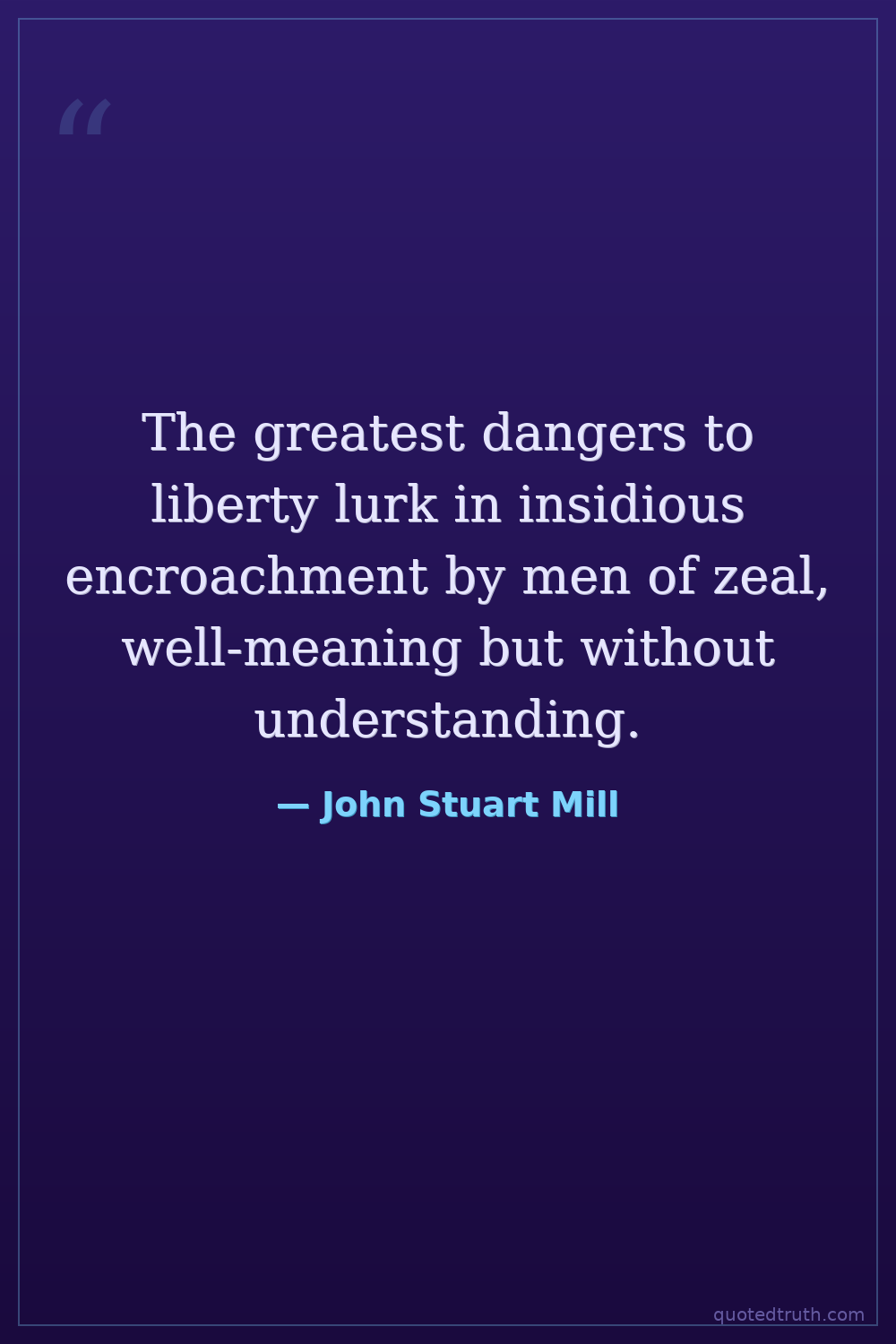 The greatest dangers to liberty lurk in insidious encroachment by men of zeal, well-meaning but without understanding.