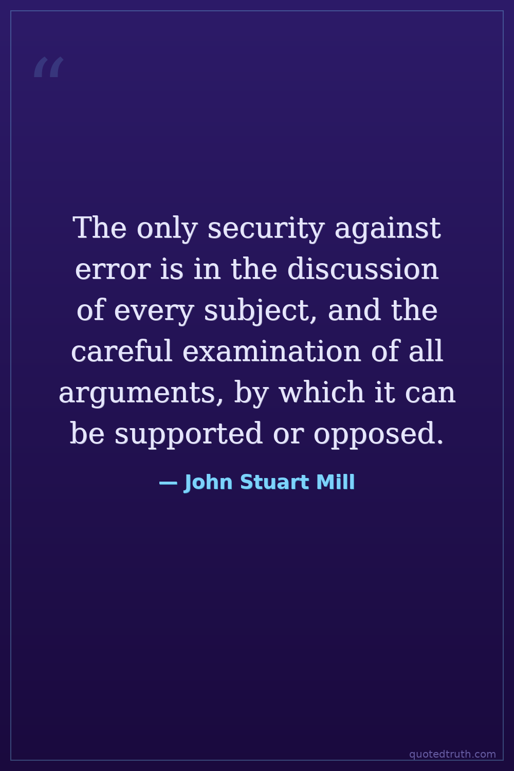 The only security against error is in the discussion of every subject, and the careful examination of all arguments, by which it can be supported or opposed.