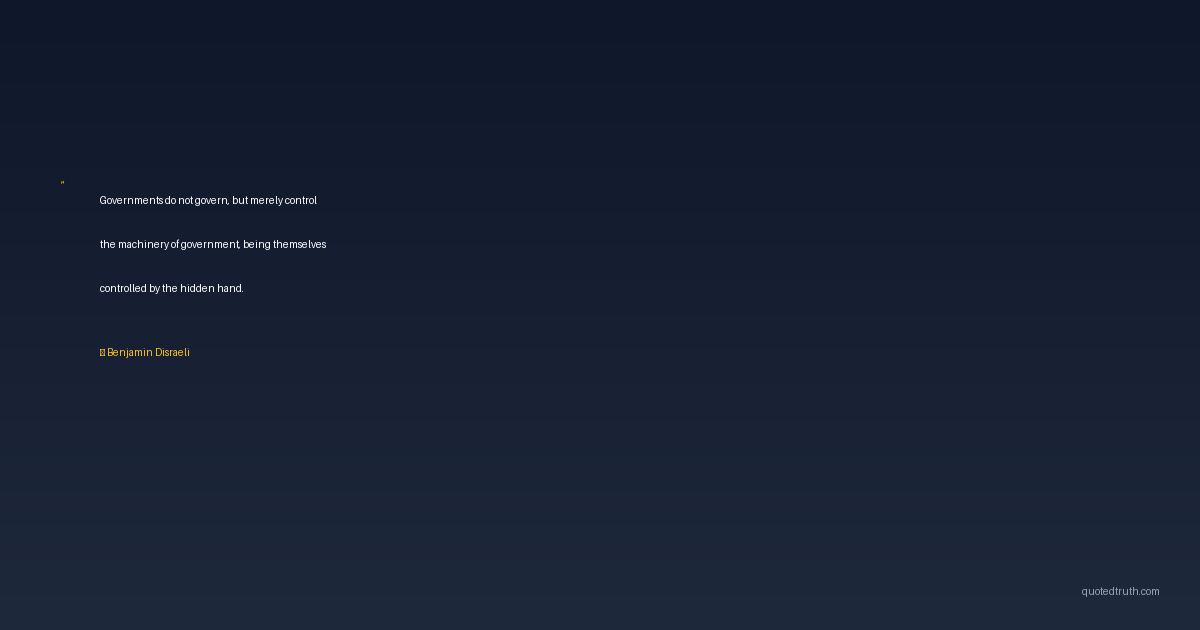 Governments do not govern, but merely control the machinery of government, being themselves controlled by the hidden hand.