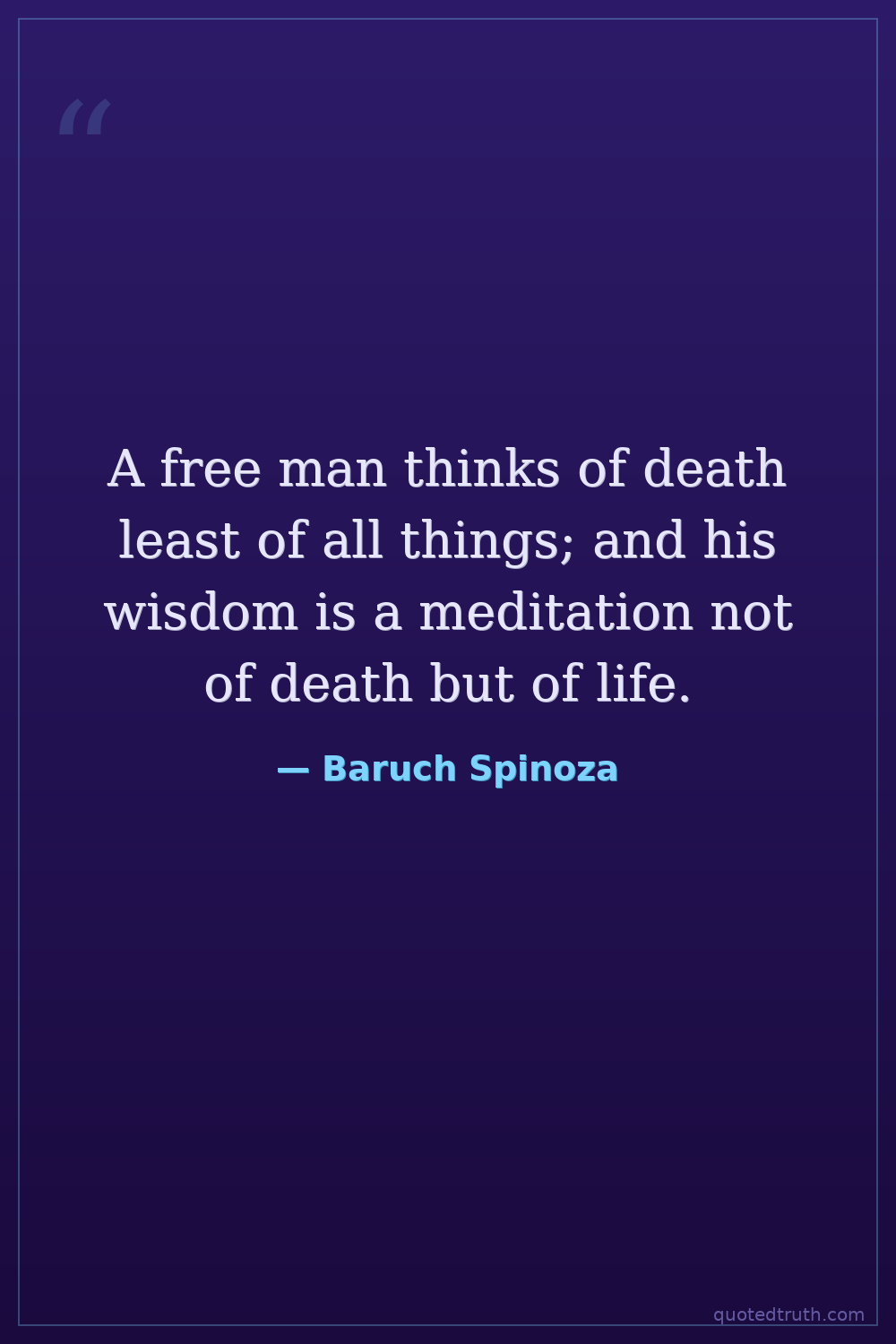 A free man thinks of death least of all things; and his wisdom is a meditation not of death but of life.