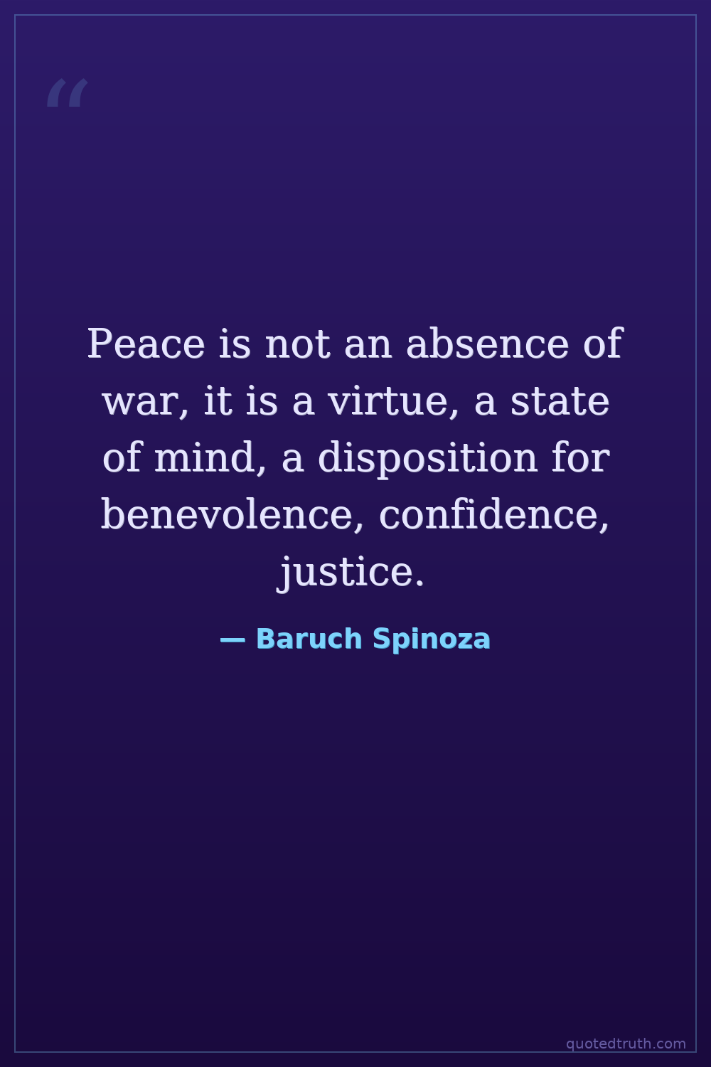 Baruch Spinoza — "Peace is not an absence of war, it is a virtue, a state of mind, a disposition f…"