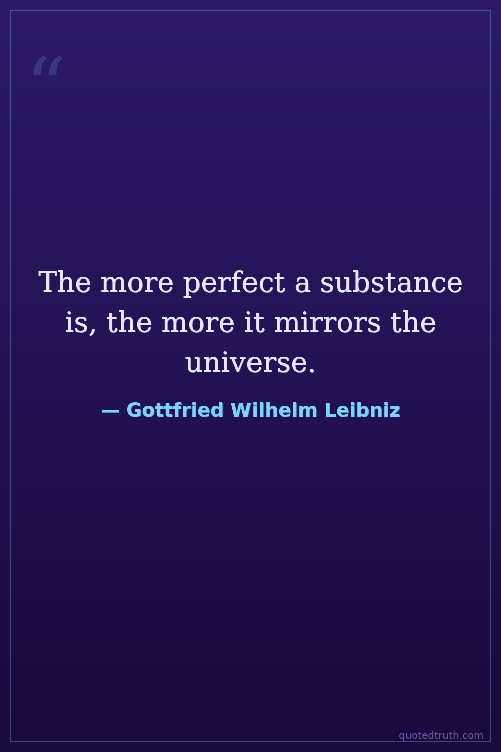 The more perfect a substance is, the more it mirrors the universe.