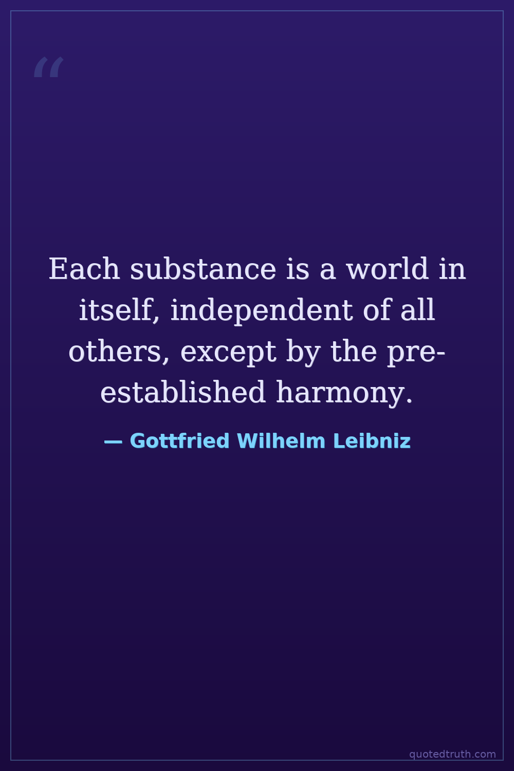 Each substance is a world in itself, independent of all others, except by the pre-established harmony.
